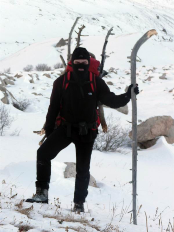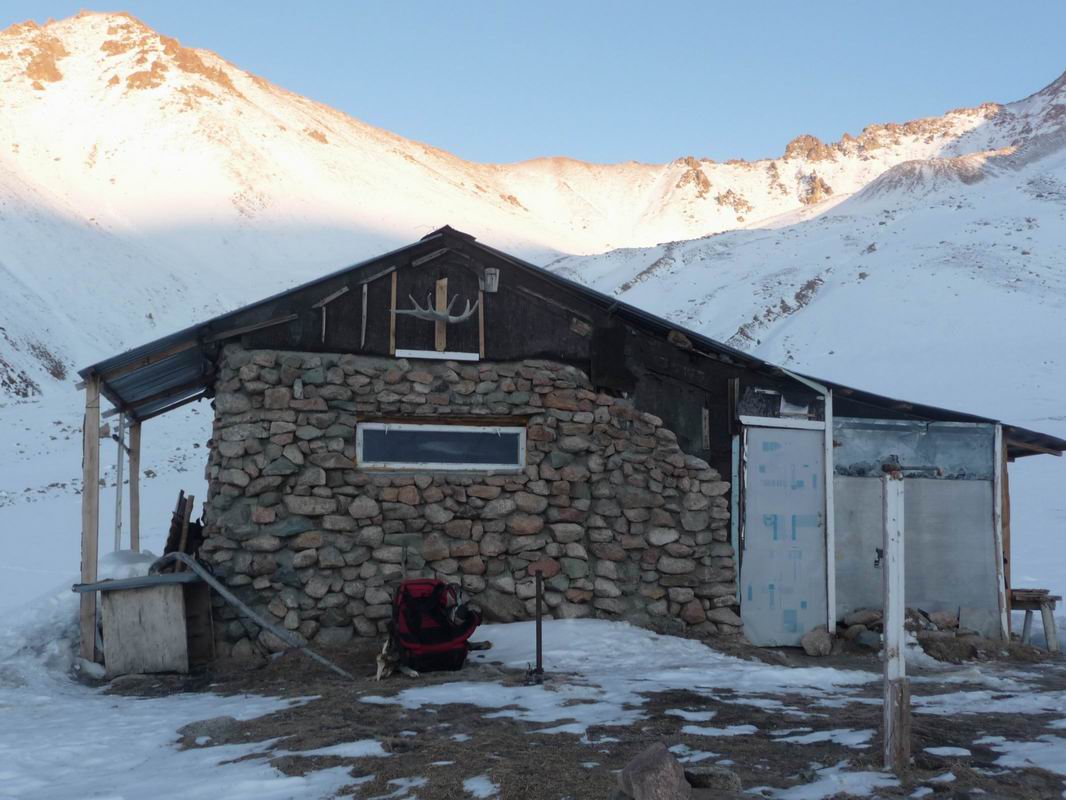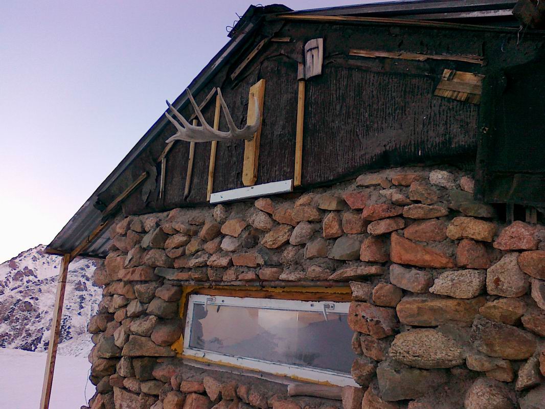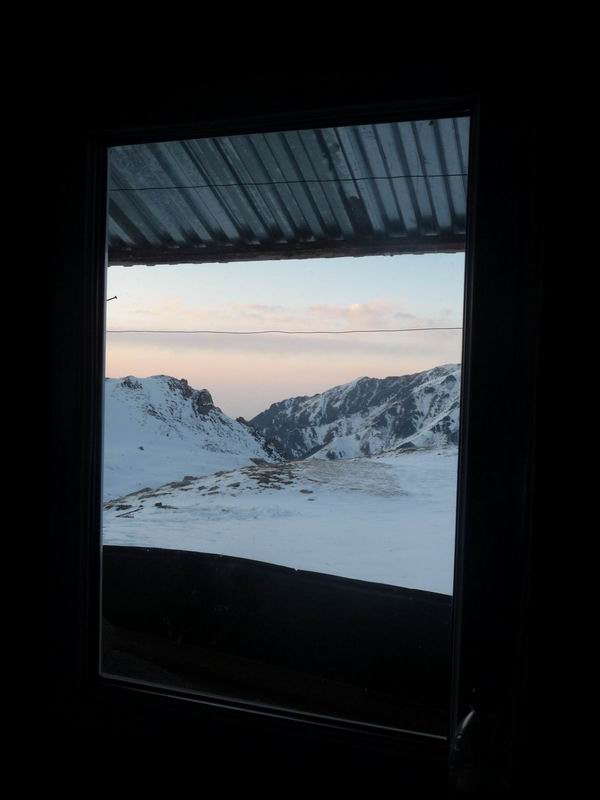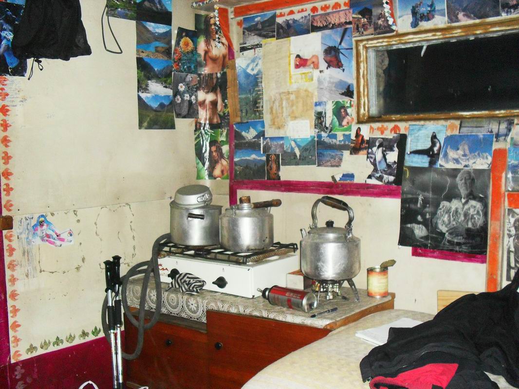 Зимой при восхождениях обычно ночуют в палатках под открытым небом. Альпинисты, правильно экипированные, запросто ночуют и при -50 с сильным ветром. Хотя на улице сейчас -15 и почти нет ветра, это все равно, конечно, холодно, и мы выбираем домик. Снаружи стены комнаты обнесены камнем на цементе, какие теплоизолирующие слои использованы внутри, я не знаю, но через 20 минут после того, как печка была растоплена, стало очень жарко и тепло держалось всю ночь. Вообще говоря, это курортные условия для зимнего высокогорья.