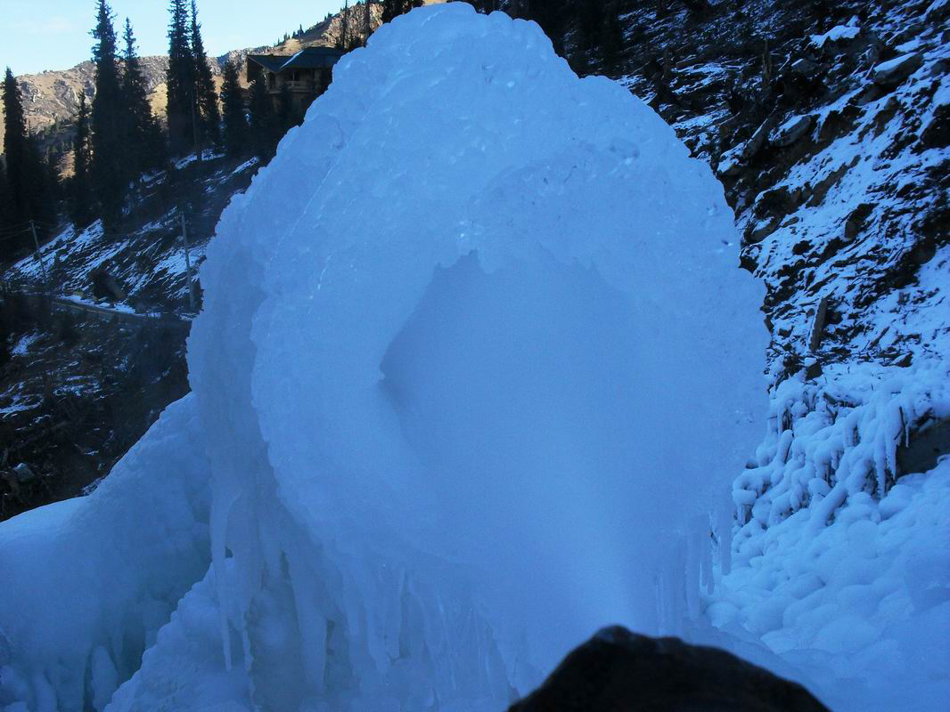 Из земли торчит неведома труба и из нее под большим давлением бьет струя воды. Так появилась гигантская сосуля имени Валентины Ивановны.