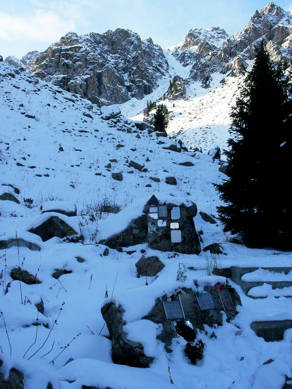 У подножия вершины с громадами суровых скал, среди угрюмых деревьев и жесткой травы покрытой снегом, лежат когда-то остановившиеся холодные камни, а на них — памятные таблички о людях, навсегда оставшихся с горами. Всматриваясь в эти таблички, я испытывал чувство неловкости, как будто заглядывал в чужие окна. Но в них так пронзительно отражалась красота дикой природы, что я осознал, что им нечего скрывать и что я понимаю этих людей — они тоже любили горы. И я прочел все имена и прикоснулся к каждому камню, чтобы отдать им немного своего тепла и взять то, что они оставили для меня.